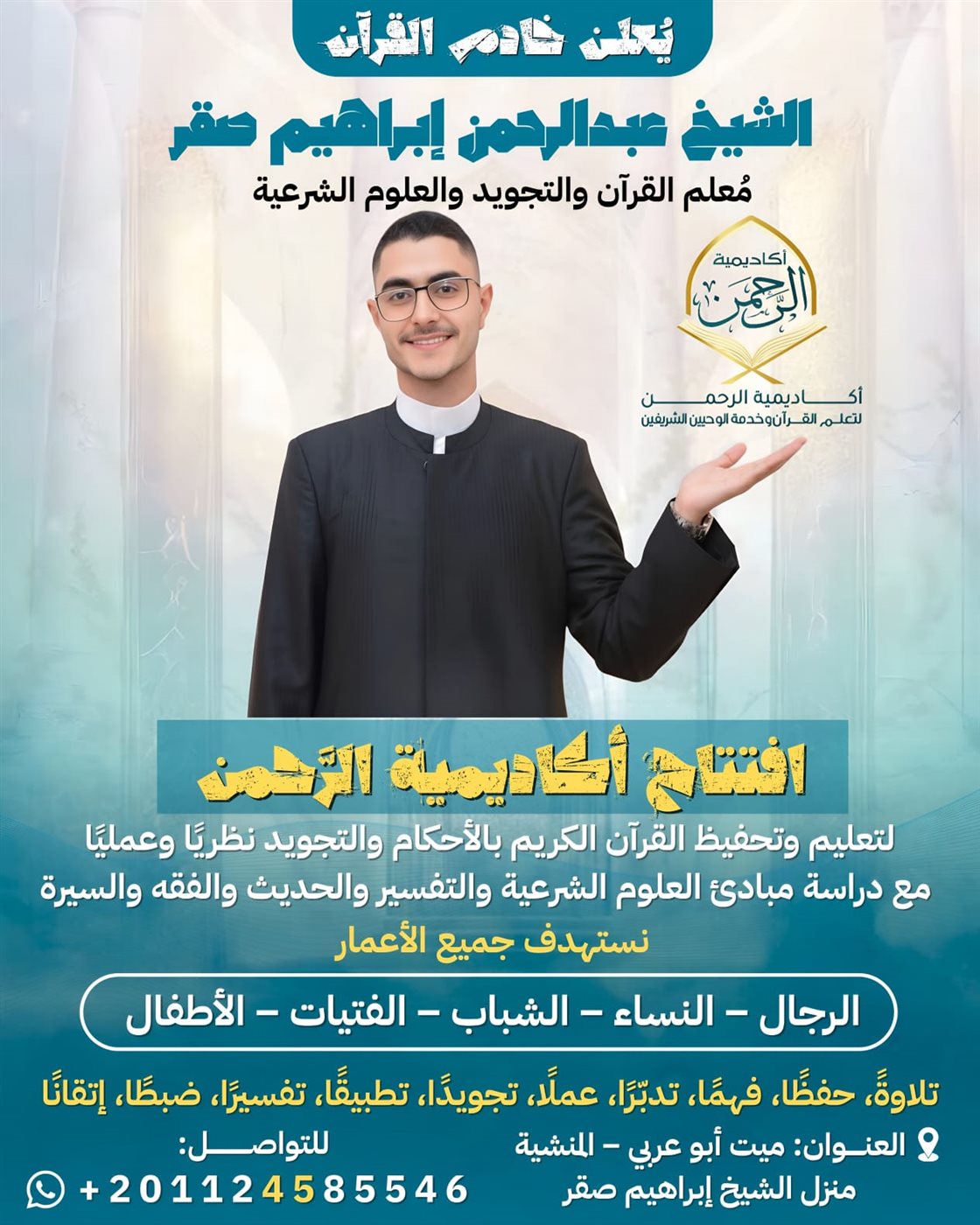 من الشرقية إلى قيادة النهضة.. «الشيخ عبدالرحمن إبراهيم صقر» يطلق أكاديمية الرحمن