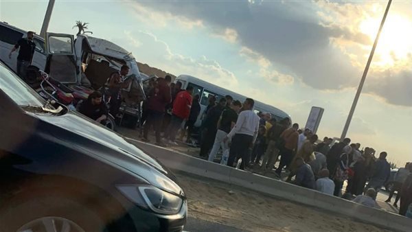 حيث وقع حادث تصادم مروع بين سيارة «ميكروباص ودراجتين ناريتين»، أسفر أيضاً عن إصابة 5 أشخاص بإصابات بالغة.