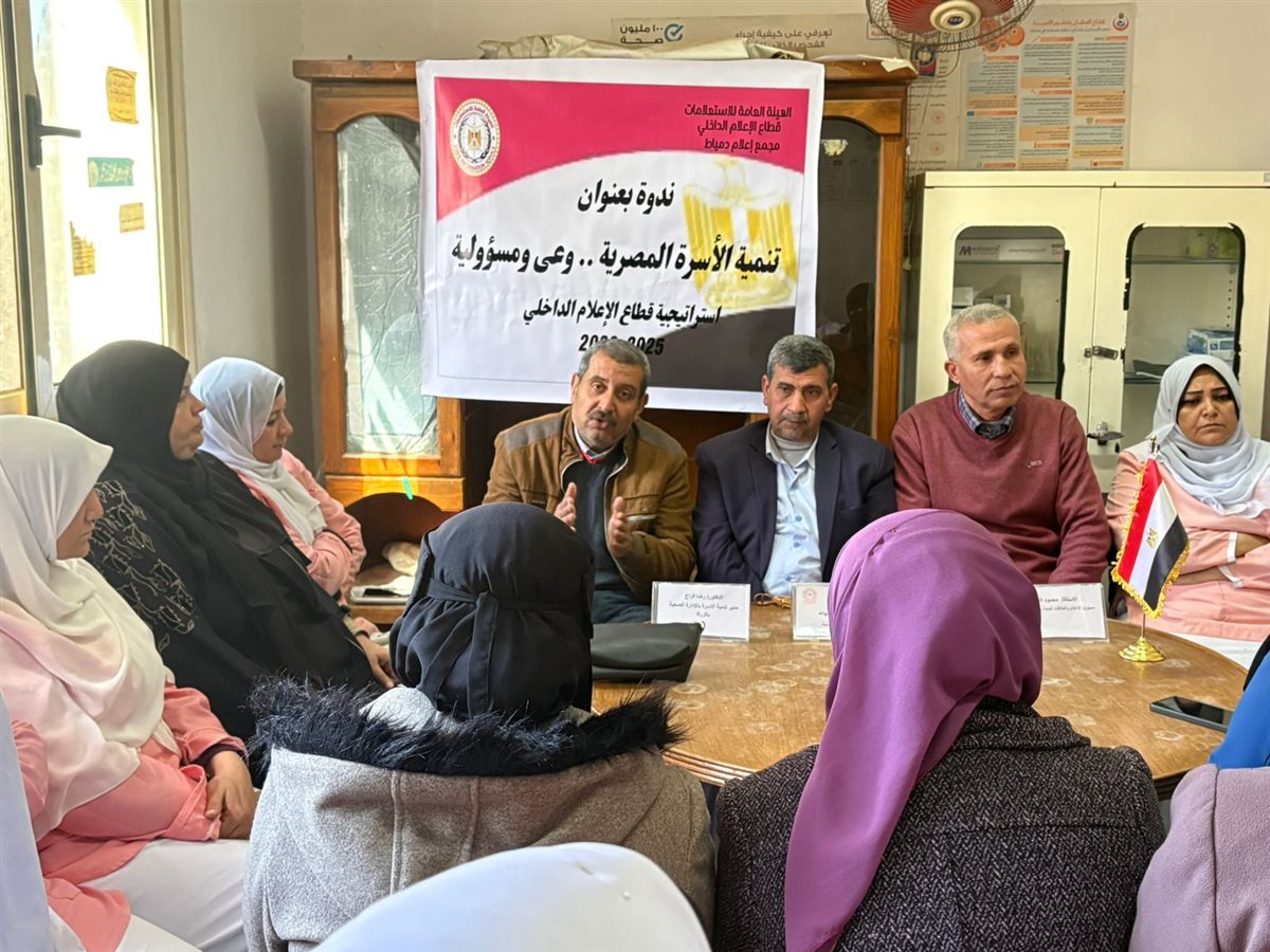 نظّم مجمع إعلام دمياط، التابع لقطاع الإعلام الداخلي بالهيئة العامة للاستعلامات، حلقة نقاشية بعنوان «تنمية الأسرة المصرية.. وعي ومسؤولية»، وذلك بالتعاون مع الإدارة الصحية بالزرقا، في إطار تنفيذ استراتيجية قطاع الإعلام الداخلي (2025–2030)، وبرعاية الكاتب الصحفي الدكتور ضياء رشوان، رئيس الهيئة العامة للاستعلامات.