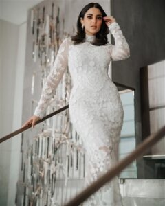 قامت الفنانة درة بمشاركة متابعيها بعدة صور من أحدث جلسة تصوير، وظهرت درة بإطلالة أنيقة بفستان أبيض من التول مطرز بزخارف نباتية.
